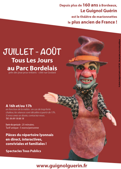 Comme chaque année le Guignol Guérin est très heureux de vous retrouver pour ses spectacles sur Bordeaux et en Nouvelle Aquitaine en juillet et en août !